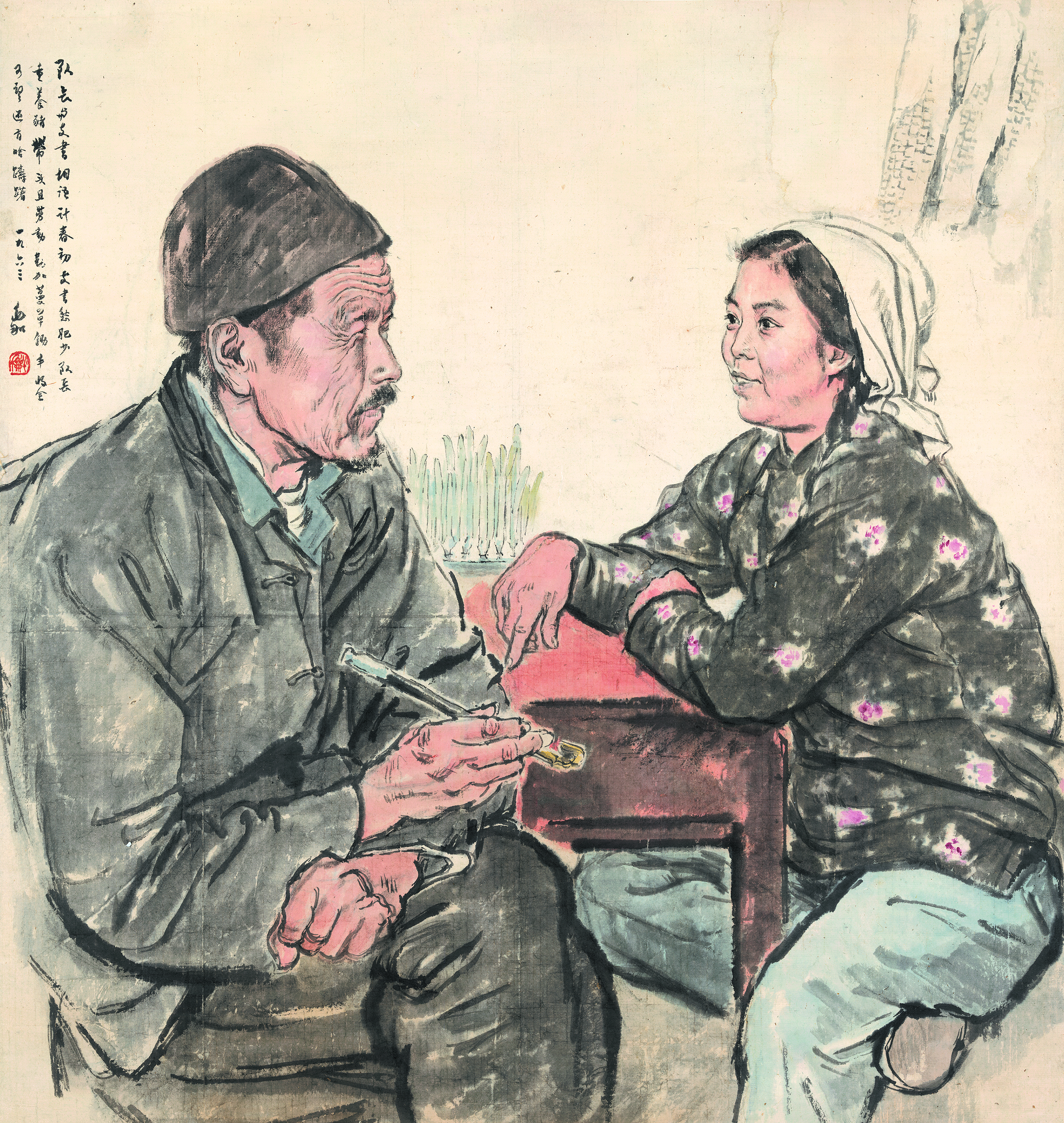 ▲队长与支书(国画) 96.6×91.4厘米 1963年 蒋兆和
